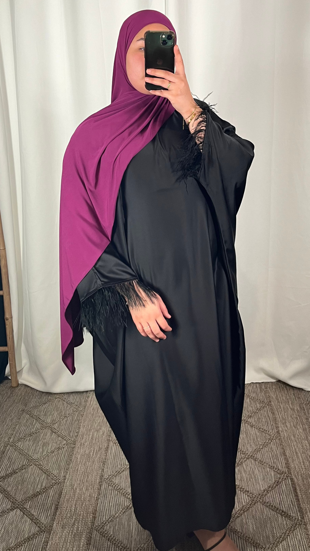 Élégante Robe Miya en satin de couleur Noir taille unique convient à tout type de morphologie du a sa coupe ample, mais peut tout de même être cintré avec la ceinture intégrer à l'intérieur.